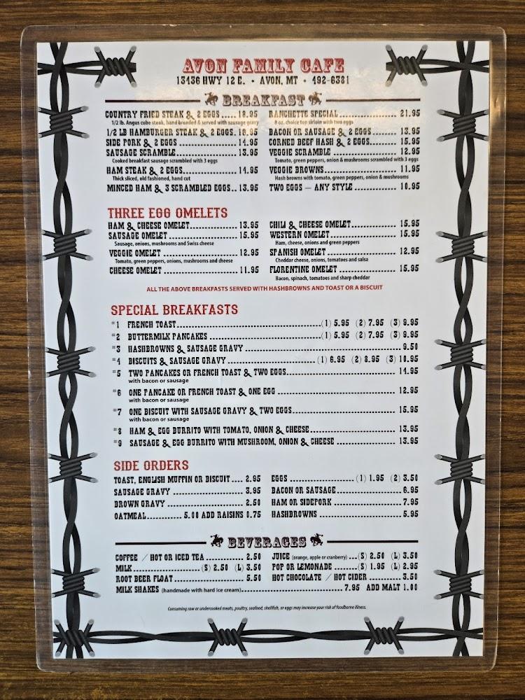 Welcome to Avon Family Cafe, your cozy retreat located at 13436 US-12 in Garrison, MT. Embrace a warm and inviting atmosphere perfect for families, groups, and solo diners alike. Enjoy a delightful range of offerings from hearty breakfasts to delectable desserts, all showcasing local specialties. With dine-in, takeout, and delivery options available, savor your meal in a relaxed setting or on the go. We’re fully accessible and provide a range of services, including high chairs for kids and mobile payments for your convenience. Experience the best in café dining where great food meets a friendly ambiance!